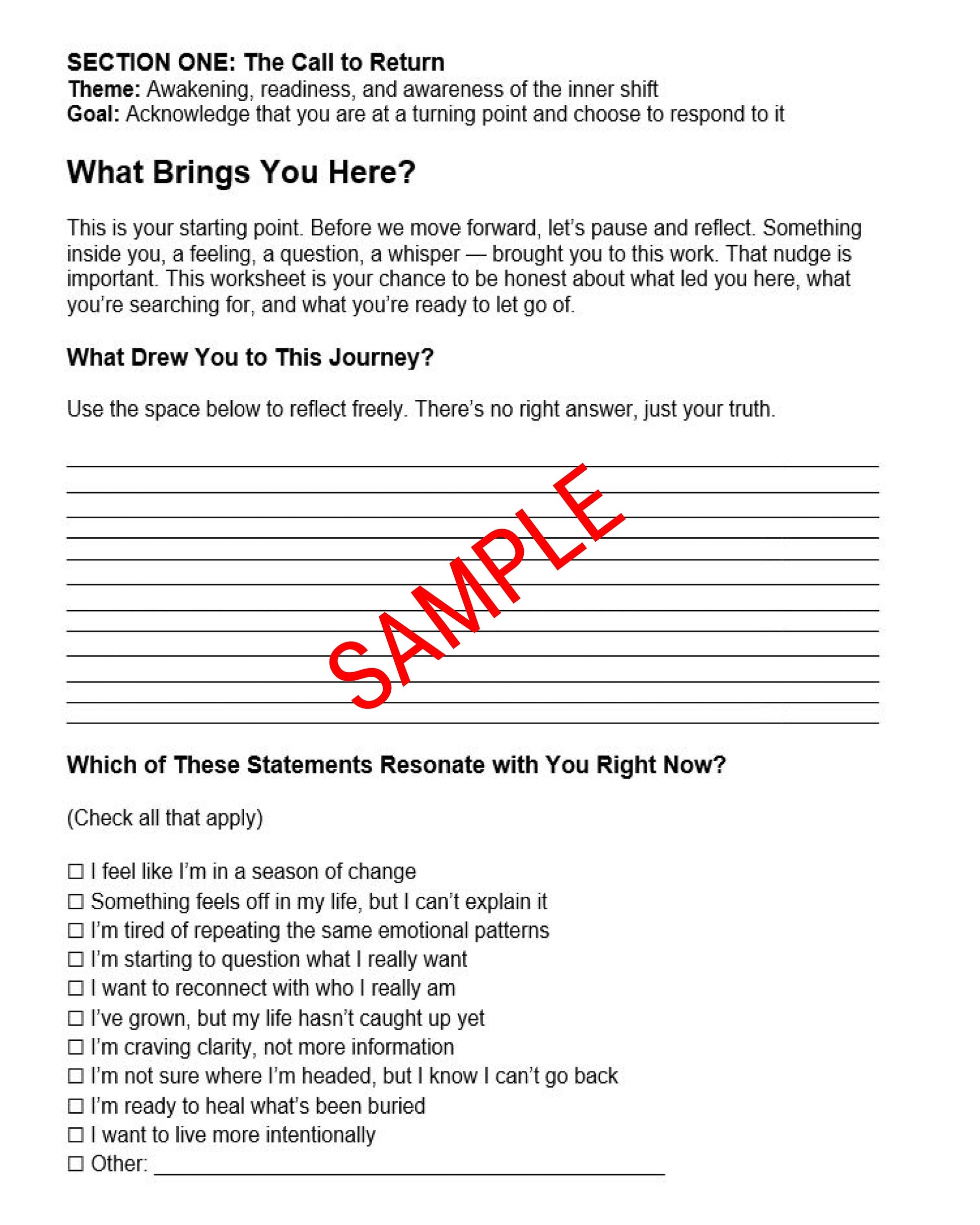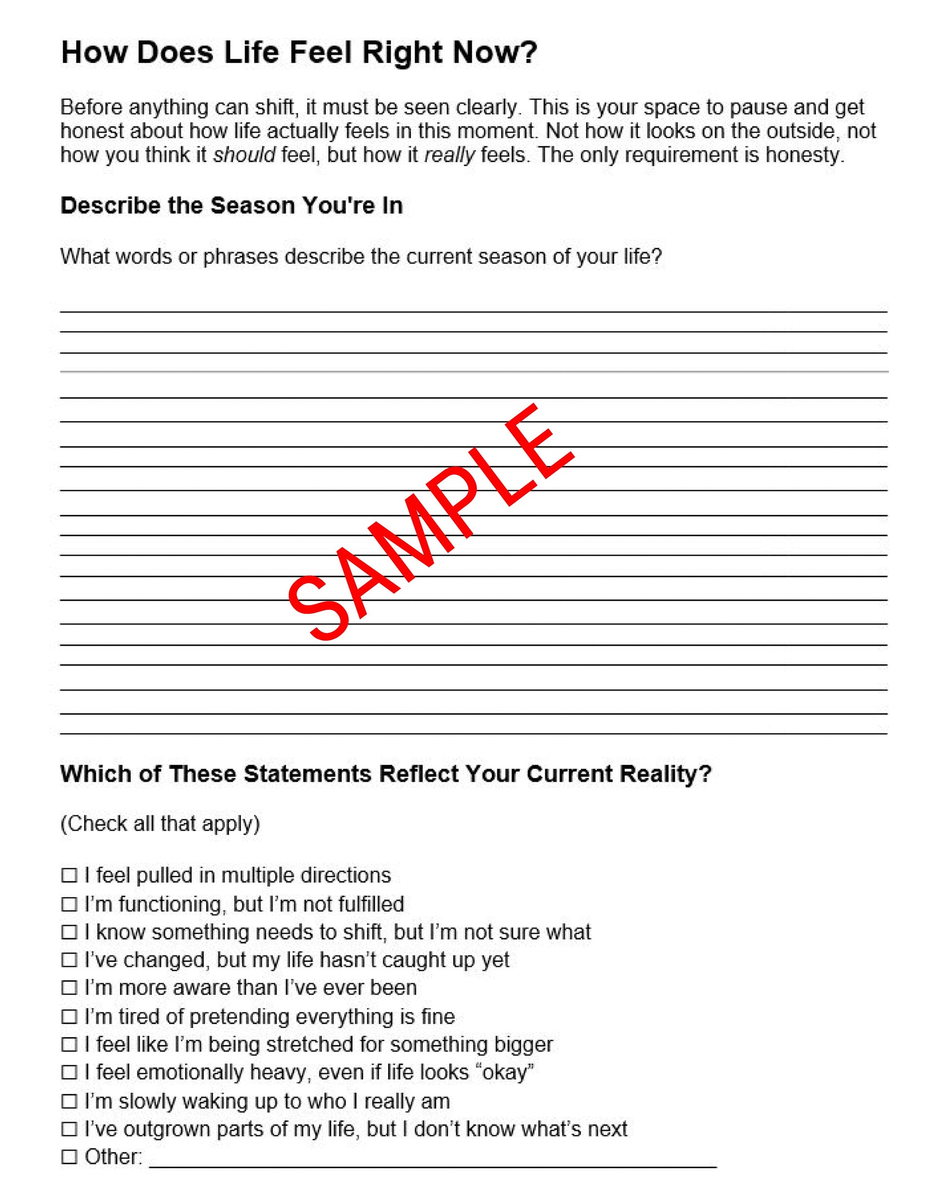 This powerful, printable tool is a self-guided experience for those who are ready to pause, reflect, and finally ask the deeper questions: Who am I, really? Why am I here? What is my life trying to teach me?